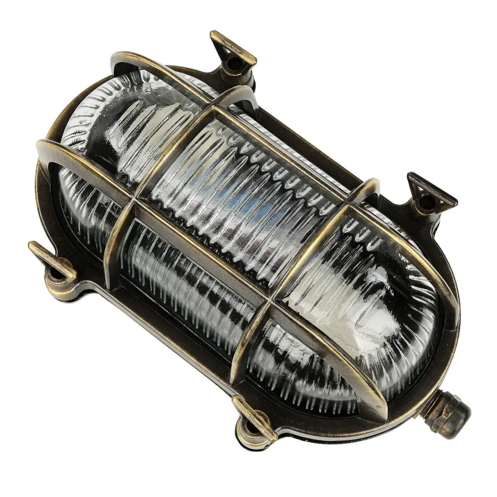 Das nautische Flair erinnert dank Riffelglas und Ziergitter an eine antike Schiffslampe: ein besonderer Blickfang auch im Eingangsbereich