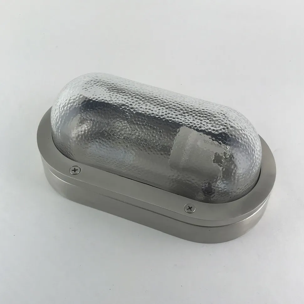 Maritime Außenwandleuchte aus massivem Messing und kunstvollem Riffelglas in Nickel matt: ideal als Haustür Lampe, Carport Beleuchtung und Garagenlampe