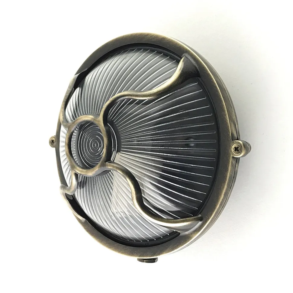 Maritime außen Wandlampe aus massivem Messing und kunstvollem Riffelglas in Antik: ideal als Haustür Lampe, Terrassenbeleuchtung, Balkon Lampe, Carport Beleuchtung und Garagenlampe