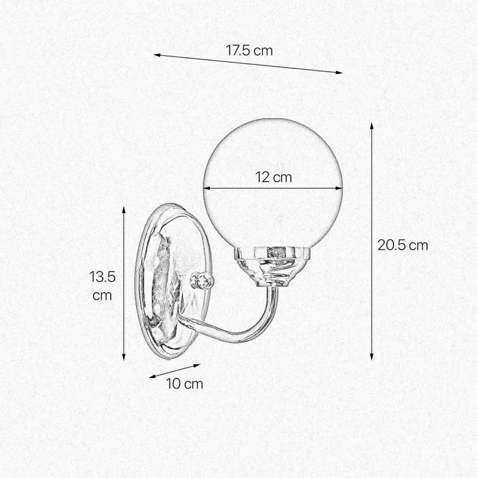 Klassische Wandleuchte aus Messing mit Kugelschirm aus Glas