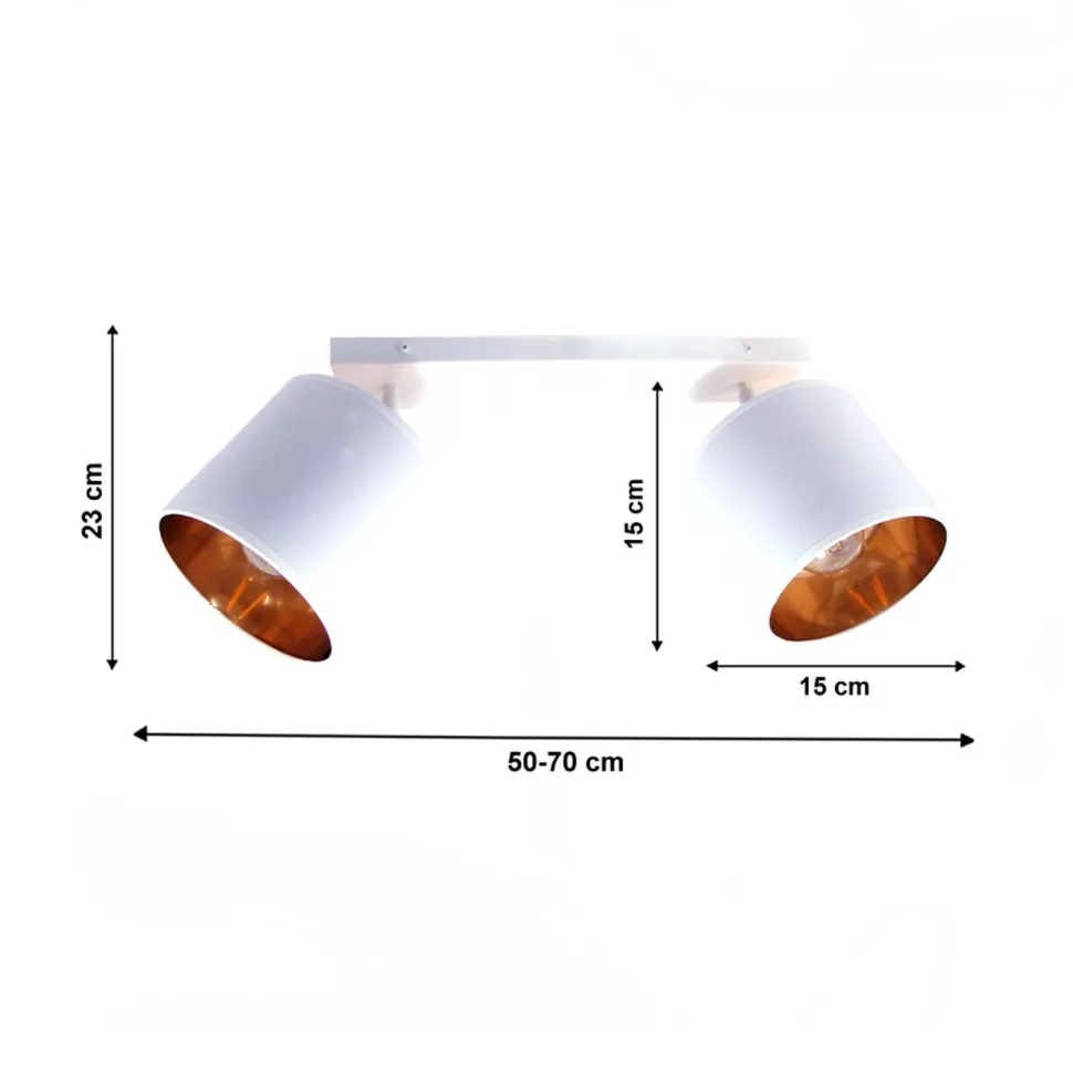 Freie Leuchtmittelwahl: Du kannst Helligkeit und Lichtfarbe mit der Wahl von passenden Leuchtmitteln individuell bestimmen | nicht inklusive Entdecke den modernen Deckenspot HAIPIS – die perfekte Kombination aus stilvollem Design und funktionaler Beleuchtung. Mit seinem eleganten Mix aus Weiß und Gold fügt sich dieser Aufbaustrahler harmonisch in jedes Wohnambiente ein. Ob im Wohnzimmer, Schlafzimmer, Flur oder Arbeitszimmer, dieser Deckenspot sorgt für eine gemütliche Lichtstimmung und setzt gezielte Akzente. Die dreh- und schwenkbaren Schirme ermöglichen es dir, das Licht genau dorthin zu lenken, wo du es benötigst. Die goldene PVC-Folie auf der Innenseite der Schirme sorgt für eine blendarme und warme Ausleuchtung, die jeden Raum in einladendes Licht taucht. Du hast die Freiheit, die Helligkeit und Lichtfarbe selbst zu bestimmen, indem du die passenden E27-Leuchtmittel wählst (max. 2x 60W). So kannst du die ideale Atmosphäre für jeden Anlass schaffen – sei es ein entspanntes Abendessen oder konzentriertes Arbeiten. Mit einem Durchmesser von 150 mm und einer Länge von 700 mm ist der HAIPIS Deckenspot nicht nur funktional, sondern auch ein echter Hingucker. Die Verwendung von hochwertigen Materialien wie Metall und Stoff garantiert Langlebigkeit und Stil. Dank der IP20-Klassifizierung ist dieser Deckenspot ideal für den Innenbereich geeignet. Egal, ob du auf der Suche nach Wohnzimmerlampen modern, Deckenstrahlern für den Flur oder stilvollen Bürolampen bist – der HAIPIS Deckenspot erfüllt all deine Anforderungen. Lass dich von der Kombination aus Funktionalität und Design inspirieren und bringe mit diesem Aufbaustrahler frischen Wind in dein Zuhause. Fazit: Der HAIPIS Deckenspot ist die ideale Wahl für alle, die Wert auf Qualität, Design und individuelle Lichtgestaltung legen. Hol dir diesen modernen Deckenspot und erlebe, wie er dein Zuhause in ein stilvolles Licht taucht!