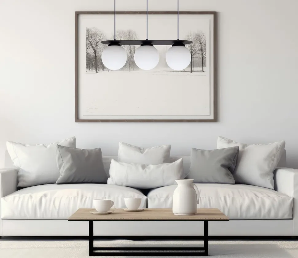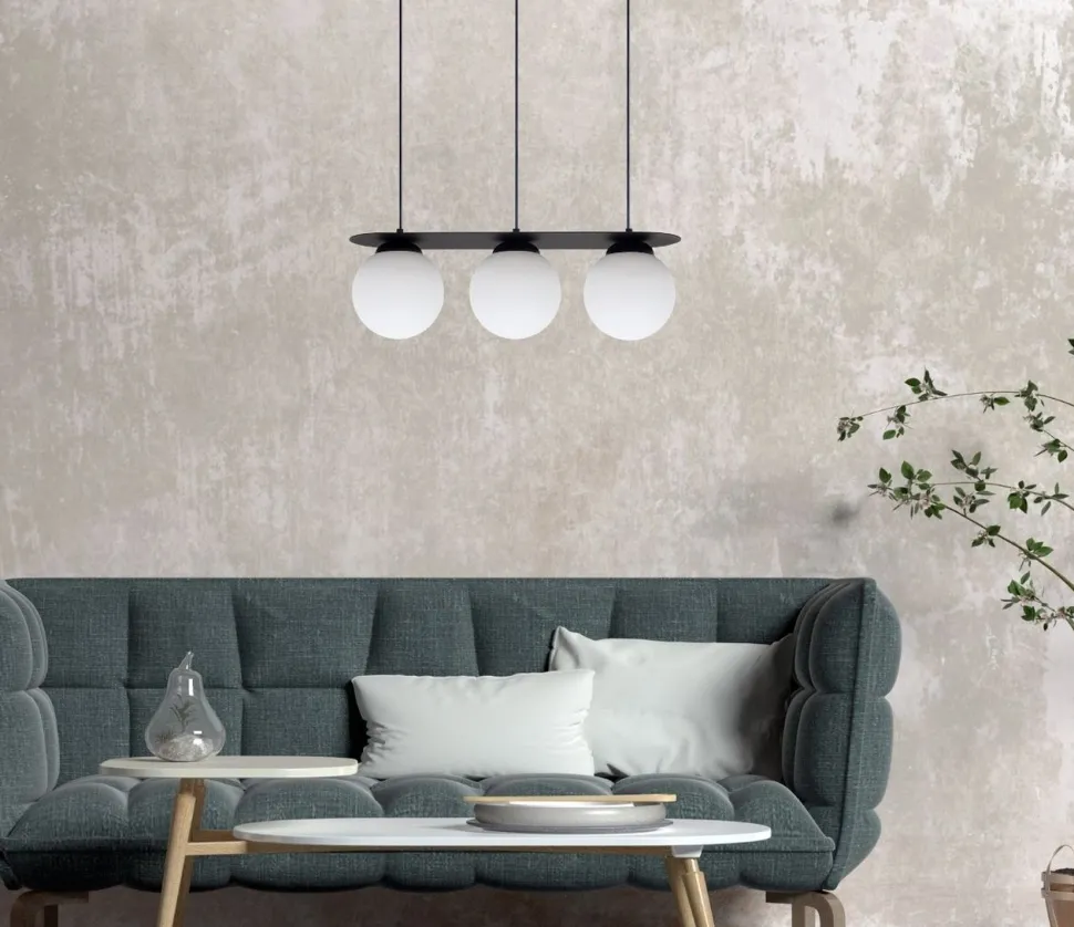 Qualität Made in EU Entdecke die zeitlose Eleganz der Hängelampe ZESUS, die mit ihrem stilvollen Design aus Metall und satiniertem Glas in Schwarz jeden Raum aufwertet. Mit einer Länge von 1000 mm und einer Höhe von 500 mm ist diese Pendelleuchte nicht nur ein Blickfang, sondern auch ideal für hohe Decken geeignet. Die große Hängetiefe sorgt dafür, dass sie perfekt über deinem Esstisch oder in deinem Wohnzimmer zur Geltung kommt. Die Kugelschirme aus satiniertem Glas erzeugen ein warmes, weiches Licht, das blendfrei ist und eine einladende Atmosphäre schafft. Ob beim gemütlichen Abendessen oder beim entspannten Zusammensitzen mit Freunden – die ZESUS Hängelampe sorgt für die richtige Lichtstimmung. Mit Platz für drei E27 Leuchtmittel bis 60W kannst du die Helligkeit ganz nach deinen Wünschen anpassen. Dank der hochwertigen Verarbeitung und der Qualität Made in EU ist diese Lampe nicht nur ein stilvolles, sondern auch ein langlebiges Wohnaccessoire. Die Aufhängung erfolgt über ein selbsttragendes Kabel an einer Schwebeplattform, was die Installation zum Kinderspiel macht. Egal, ob du nach einer modernen Pendelleuchte für dein Esszimmer, einer eleganten Küchenlampe oder einer stilvollen Wohnzimmerlampe suchst – die ZESUS Hängelampe erfüllt all deine Anforderungen. Sie vereint Funktionalität und Design und ist die perfekte Wahl für alle, die Wert auf Qualität und Ästhetik legen. Fazit: Lass dich von der ZESUS Hängelampe inspirieren und bringe Licht und Stil in dein Zuhause. Mit dieser Lampe entscheidest du dich für eine Kombination aus skandinavischem Design und praktischer Funktionalität, die jeden Raum zum Strahlen bringt.