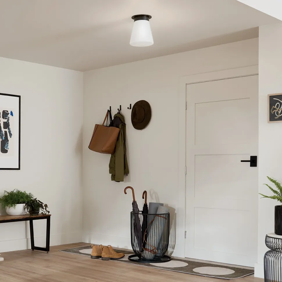 Dank ihrer geringen Größe passt die Leuchte auch in kleine Räume mit niedrigen Decken – ideal für Gäste WC, Ankleide und Eingangsbereich