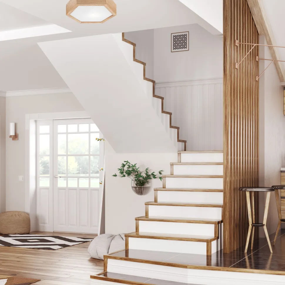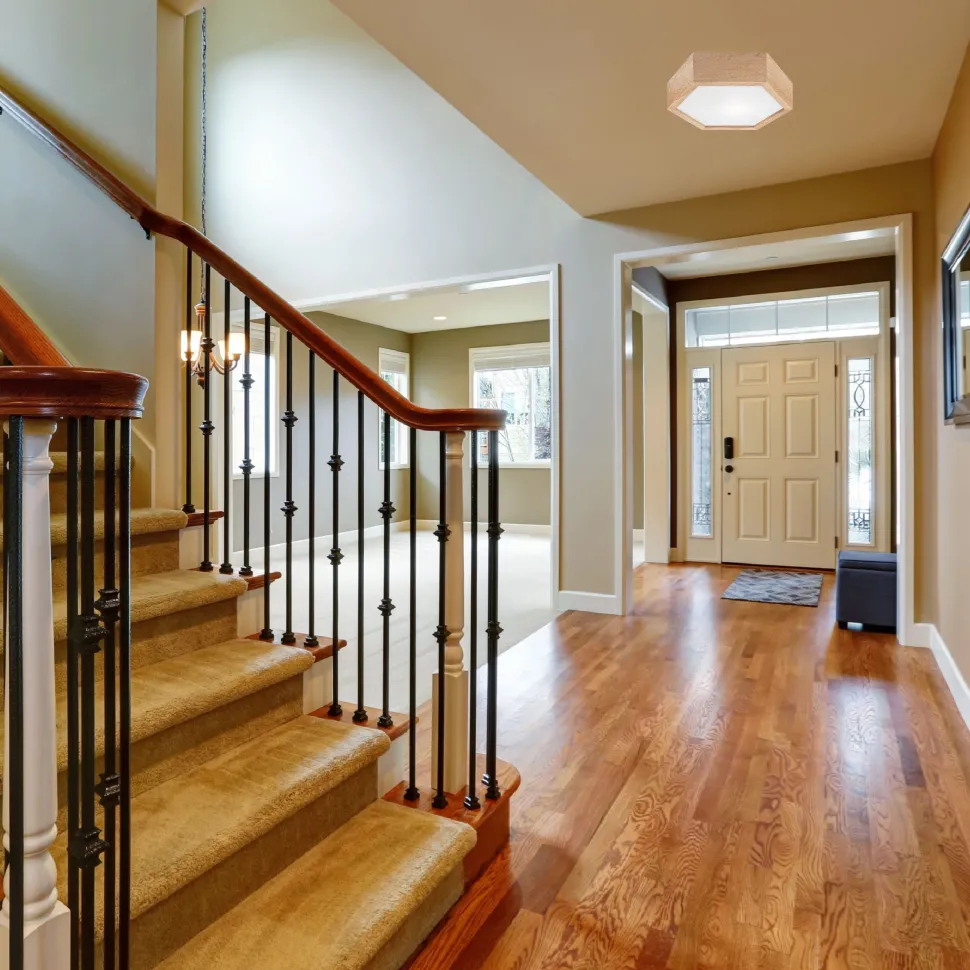 Die hexagonale Deckenleuchte sorgt für eine blendarme Beleuchtung und setzt in Wohnzimmer, Esszimmer und Flur einen dekorativen Akzent
