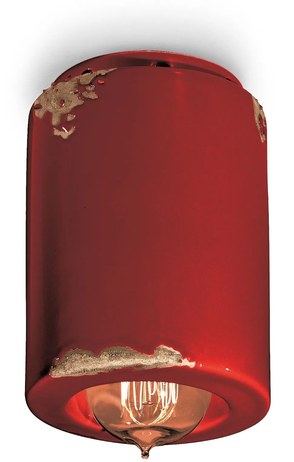 Runder Aufputz Deckenspot aus massiver Keramik in tiefem Bordeaux Rot