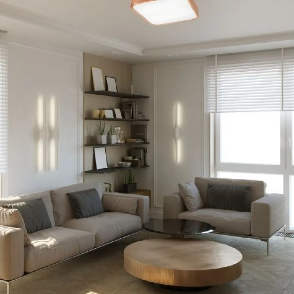 Flache Deckenleuchte aus Holz