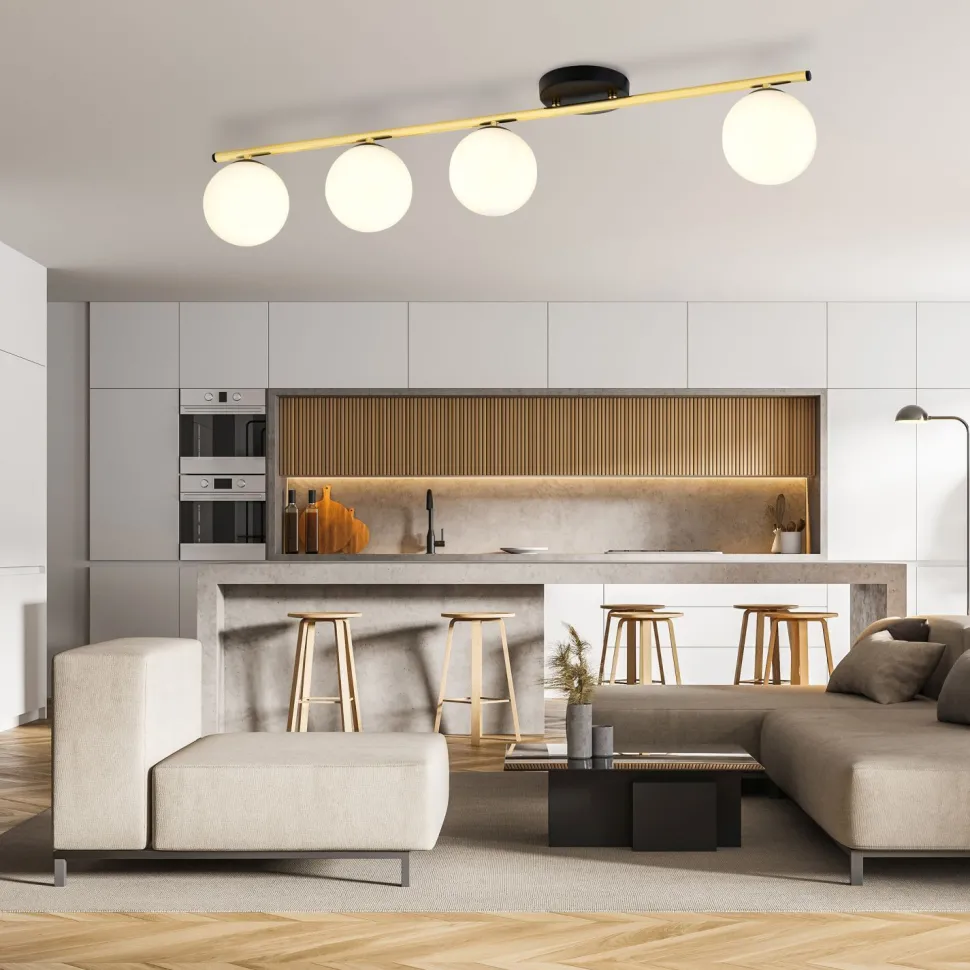 Die Kugelschirme erlauben eine blendarme Lichtstreuung – ideal in Wohnzimmer und Esszimmer