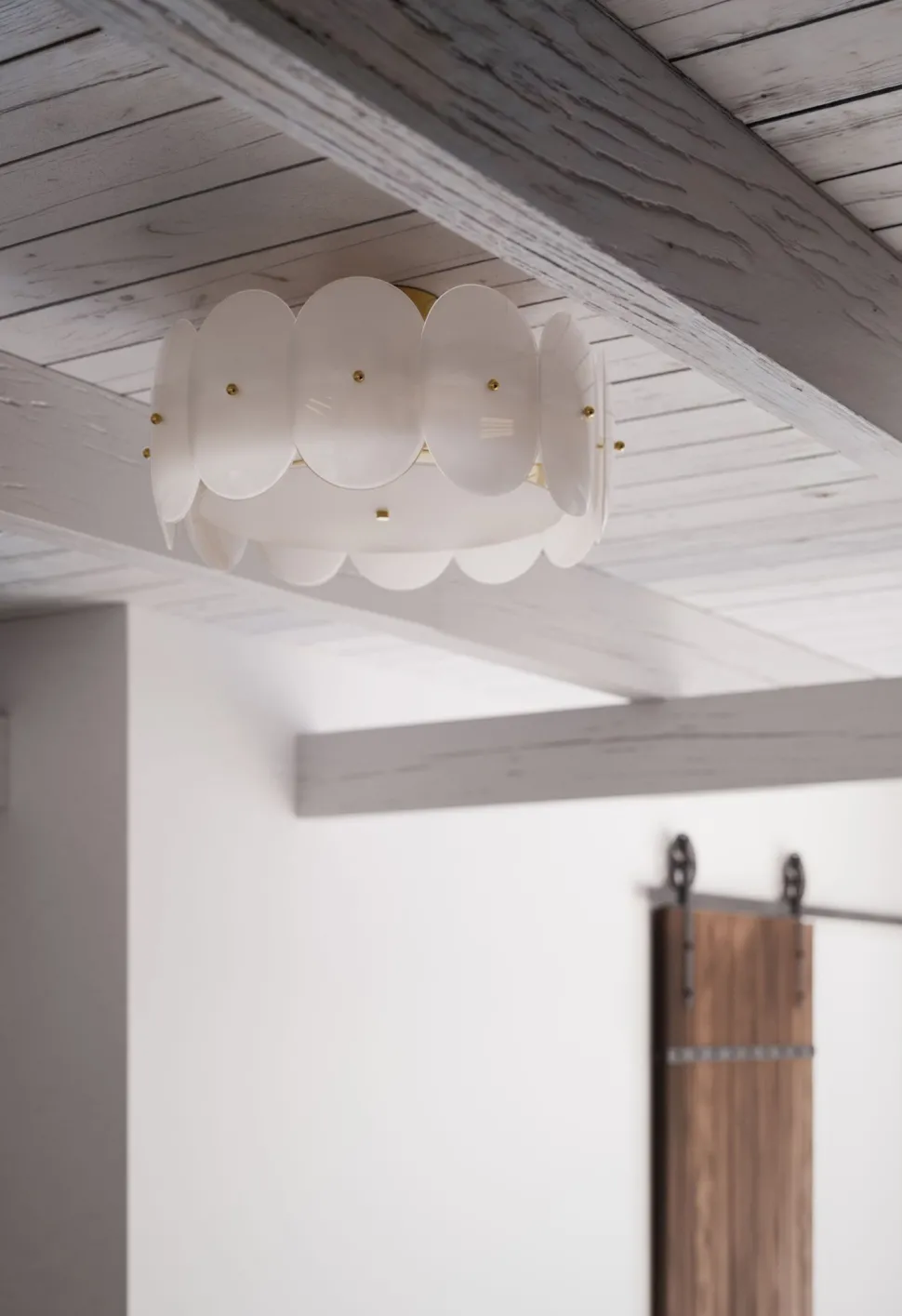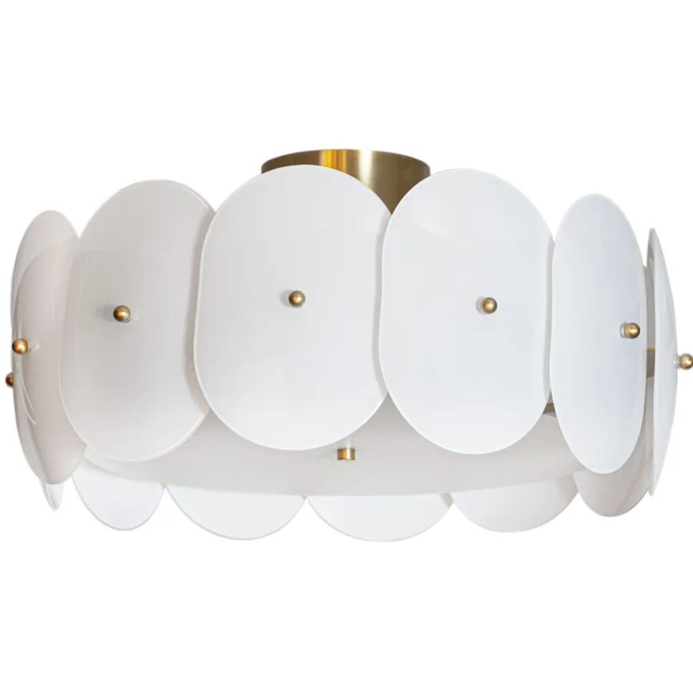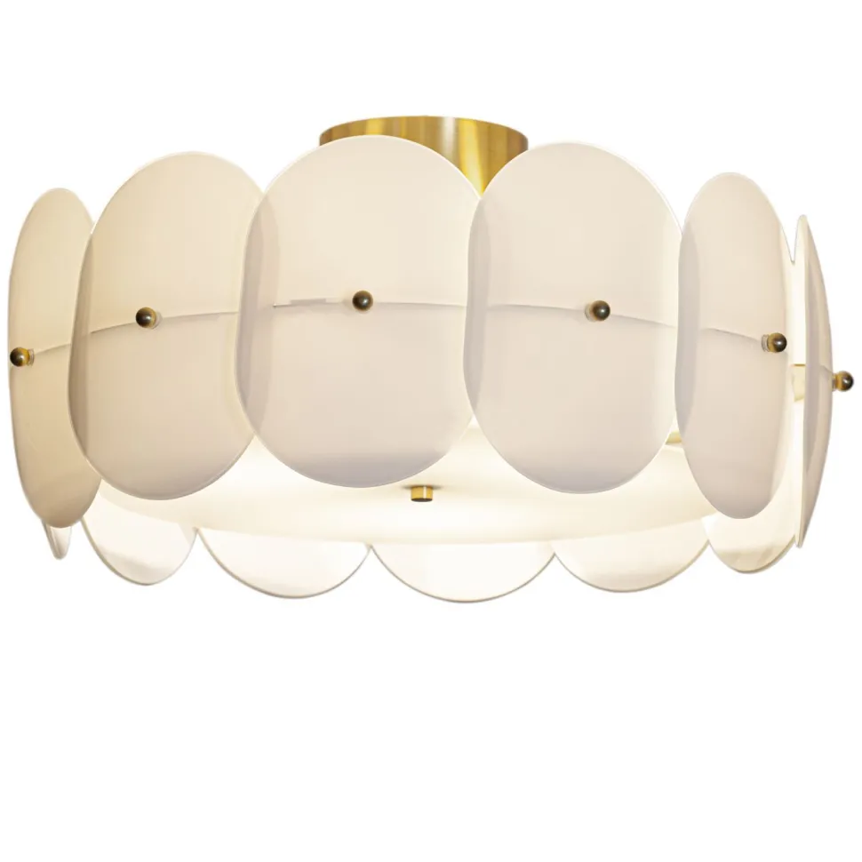 Die glänzenden Farben Messing und Weiß unterstreichen den außergewöhnlichen Look und setzen einen stilvollen Akzent an jeder Decke
