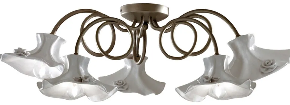 Verspielte Deckenleuchte aus Metall mit kunstvollem Keramik Lampenschirm
