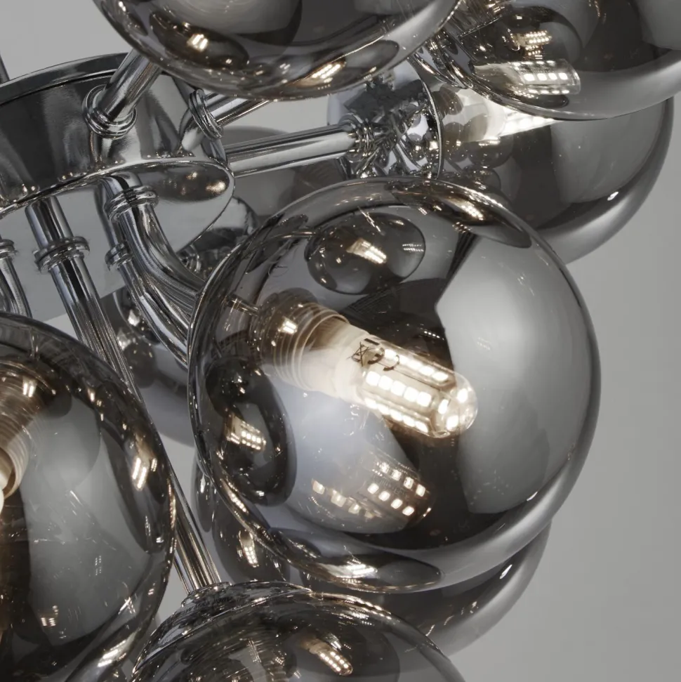 Der Lampenschirm besteht aus 13 Glas Kugeln