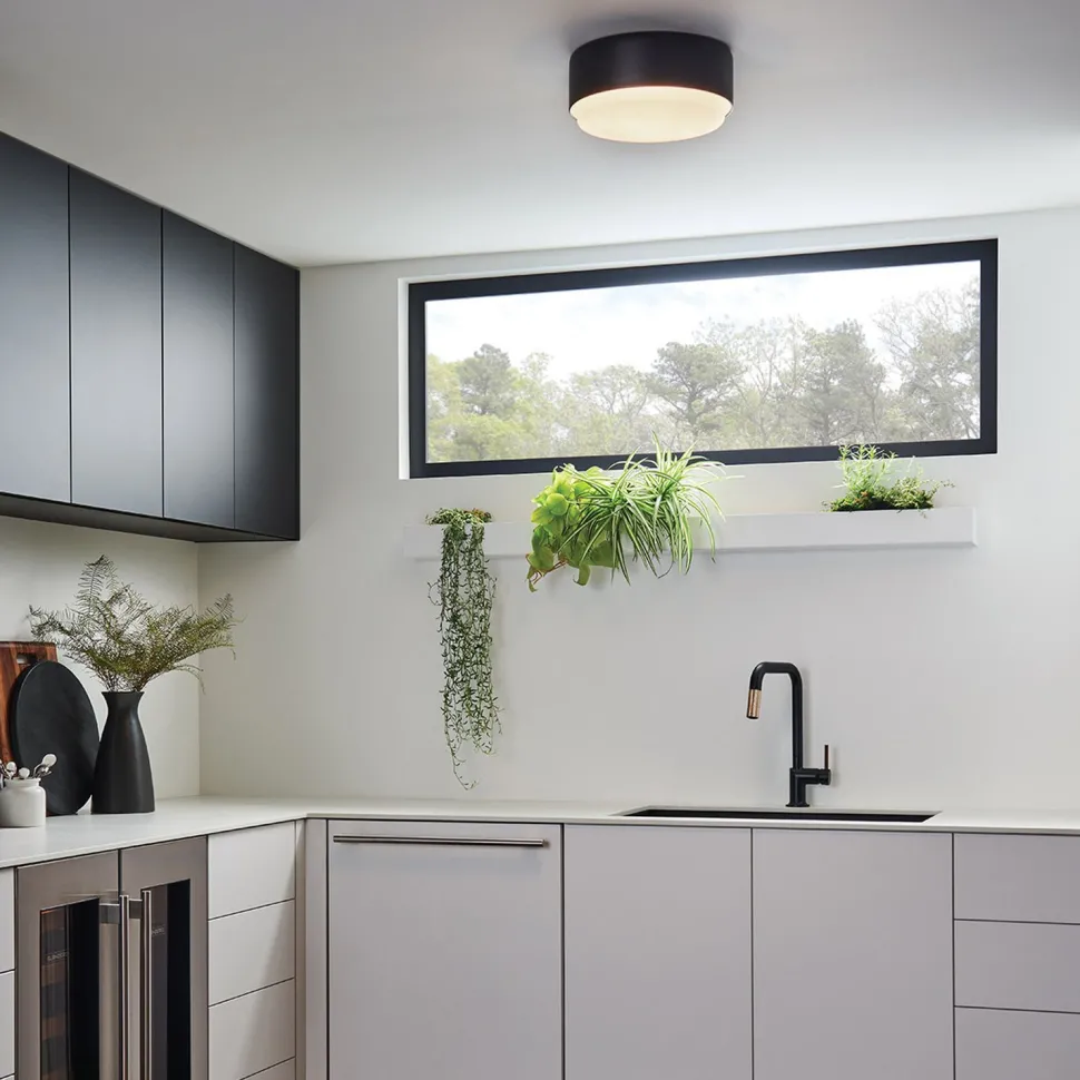 Dank ihrer geringen Größe passt die Leuchte auch in kleine Räume mit niedrigen Decken – ideal für Gäste WC, Ankleide und Eingangsbereich