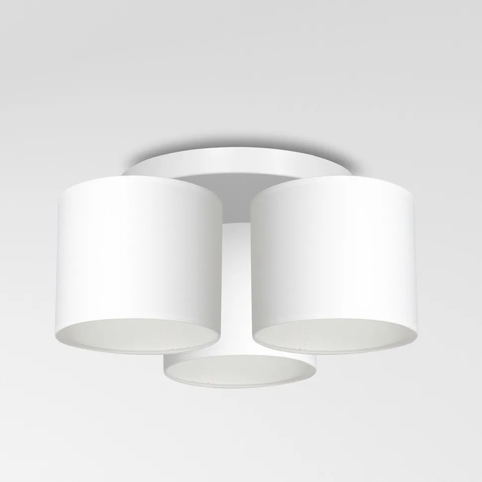 Zeitlose Deckenleuchte aus lackiertem Stahl, Stoff und Kunststoff in Weiß