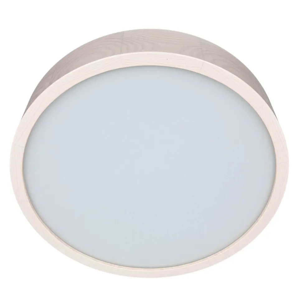 Runde Deckenleuchte aus Holz und Glas