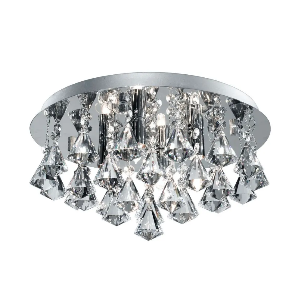 Die opulente Deckenleuchte besticht durch ihre funkelnden Glaskristalle – ein dekoratives Highlight auch in Schlafzimmer, Wohnzimmer und Esszimmer.
