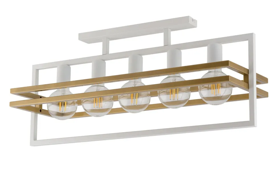 Die von zwei Rahmen in Gold umgebenen Leuchtmittel sind frei sichtbar – diese bestimmen maßgeblich den Look der Leuchte mit
