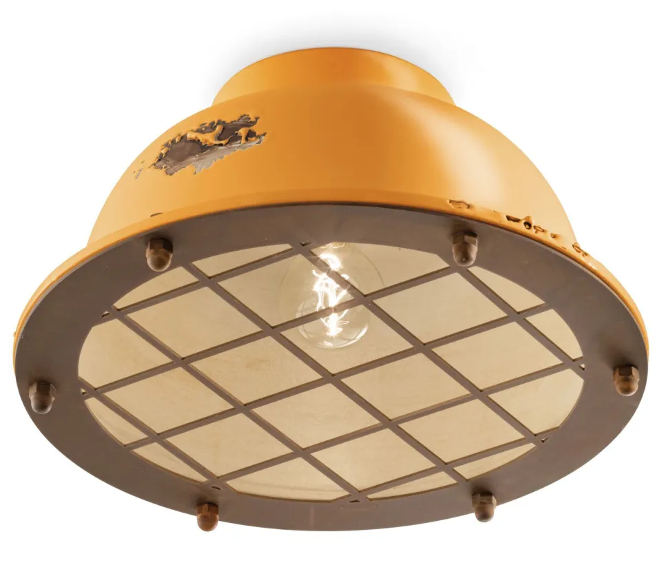 Die antik wirkende Oberfläche in Kombination mit dem kräftigen Gelb verleiht der Deckenleuchte einen einzigartigen Look, der in jedem Raum zu einem dekorativen Blickfang wird