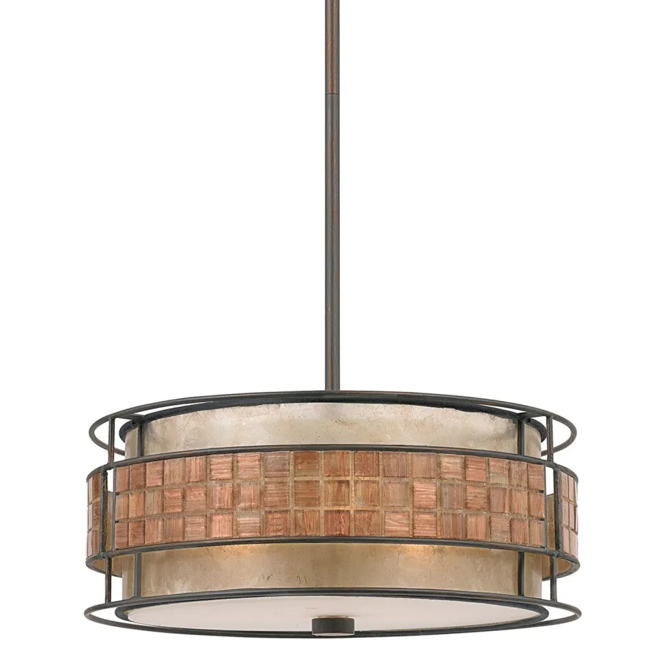Echtes Mica Glas und ein feines Mosaik aus Fließen machen aus der Deckenlampe ein dekoratives Highlight