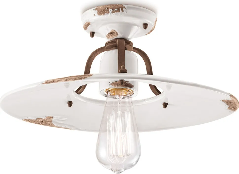 Kleine Deckenleuchte aus Keramik und Metall in hellem Weiß