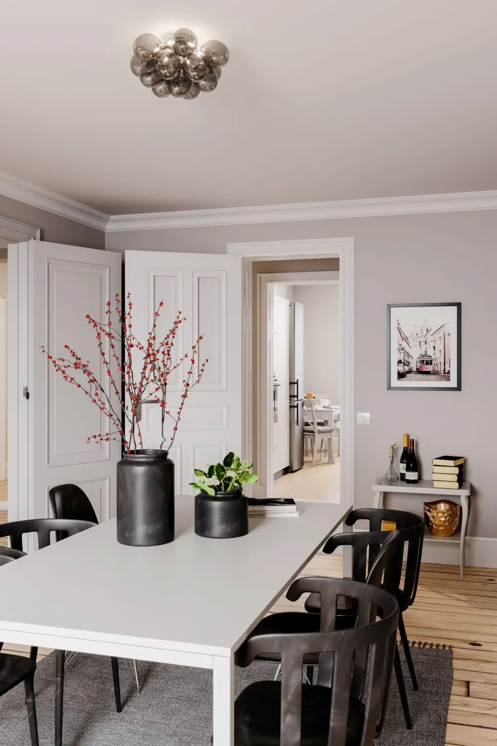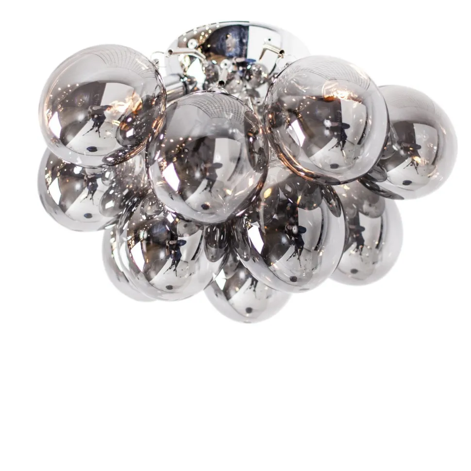Die kunstvollen Schirme aus Rauchglas sorgen für einen edlen Look, der aus der Deckenleuchte einen dekorativen Blickfang macht
