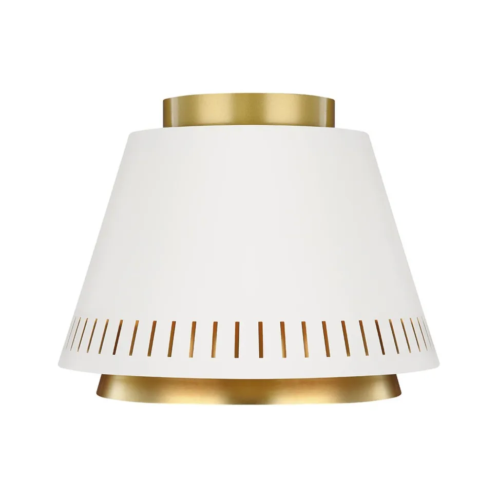 Die Kombination aus glänzendem Messing und mattem Weiß sorgt für einen besonders stilvollen Look, was aus der Deckenlampe einen dekorativen Blickfang macht