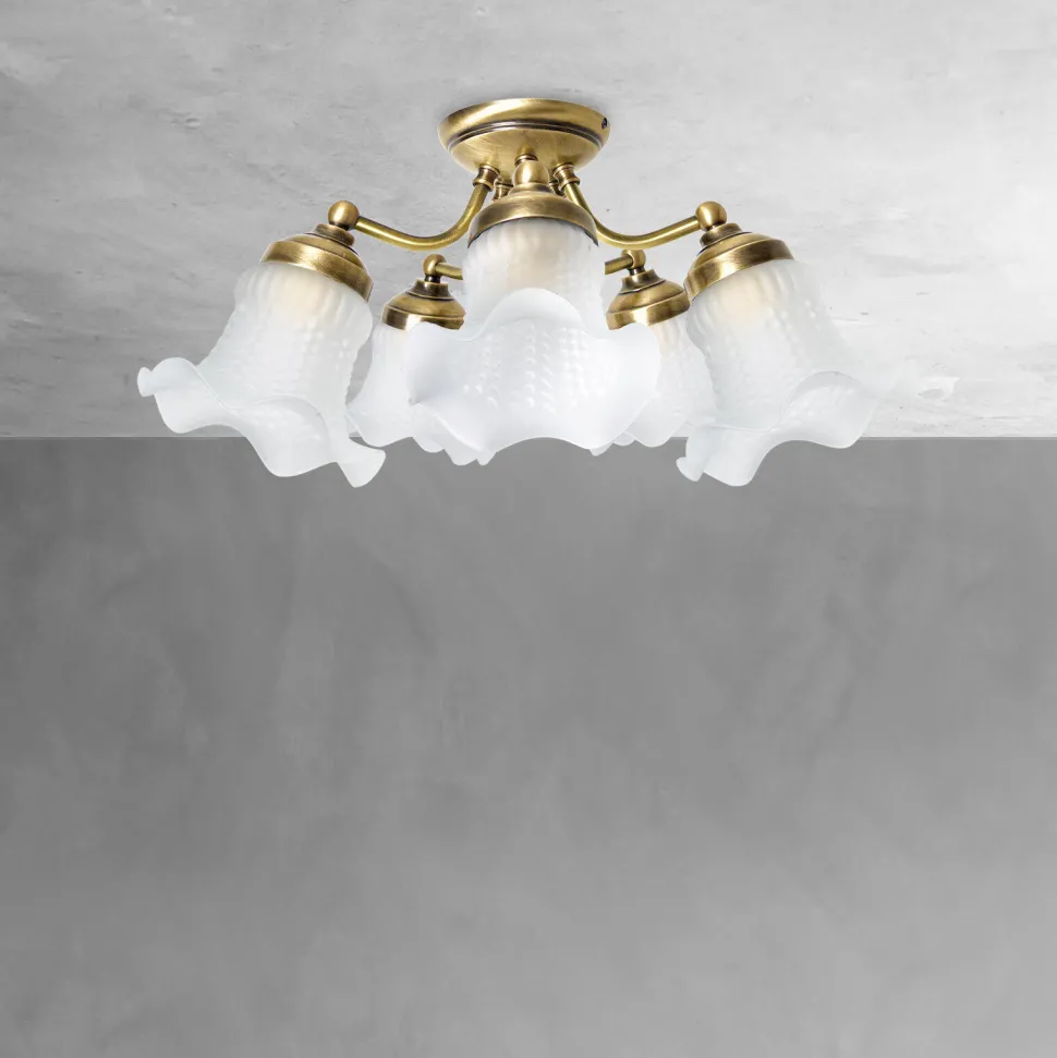 Edler Deckenstrahler aus massivem Messing und Glas