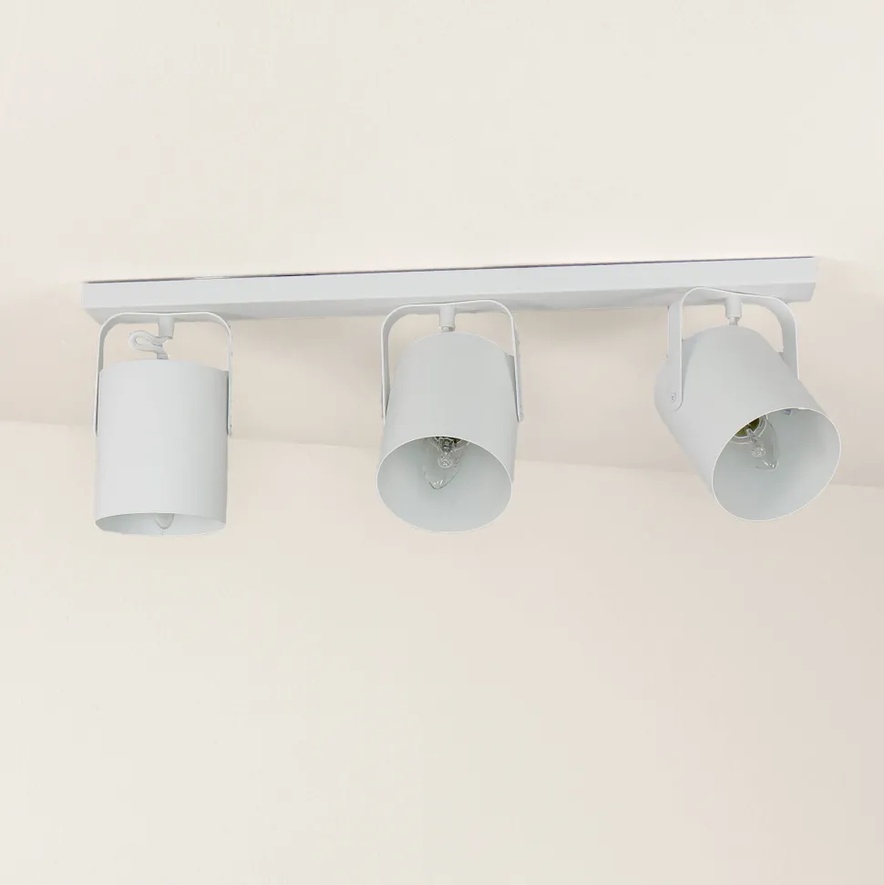 Bringe stilvolles, flexibles Licht in Dein Zuhause mit diesem modernen 3-flammigen Deckenstrahler in Weiß. Aus robustem, lackiertem Stahl gefertigt, überzeugt die Spotleuchte nicht nur durch hochwertige Verarbeitung, sondern auch durch ihr zeitloses, kompaktes Design. Die beiden dreh- und schwenkbaren Spotköpfe lassen sich individuell ausrichten – perfekt, um gezielt Lichtakzente auf Möbel, Bilder oder Arbeitsbereiche zu setzen. Mit einer Länge von 60 cm eignet sich der Strahler hervorragend für größere Räume. Dank der drei E27–Fassungen bist du bei der Wahl der Leuchtmittel völlig flexibel – Du bestimmst Lichtfarbe und Helligkeit selbst (Leuchtmittel nicht enthalten, max. 60 W je Fassung). Ideal als Deckenleuchte in Küche, Flur, Schlafzimmer oder Büro – dieser Strahler kombiniert Funktionalität mit elegantem Stil und sorgt für ein wohnliches, individuell angepasstes Lichtkonzept.
