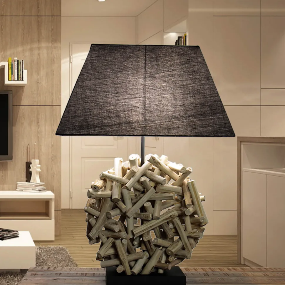 Mit dieser Treibholz Tischleuchte holen Sie sich ein absolutes Kunstwerk in Ihr Wohnzimmer. Der Mix aus Stoff, Metall und Holz verleiht der Tischlampe einen vielseitigen und dekorativen Charakter, der natürliches Flair und modernes Design vereint.