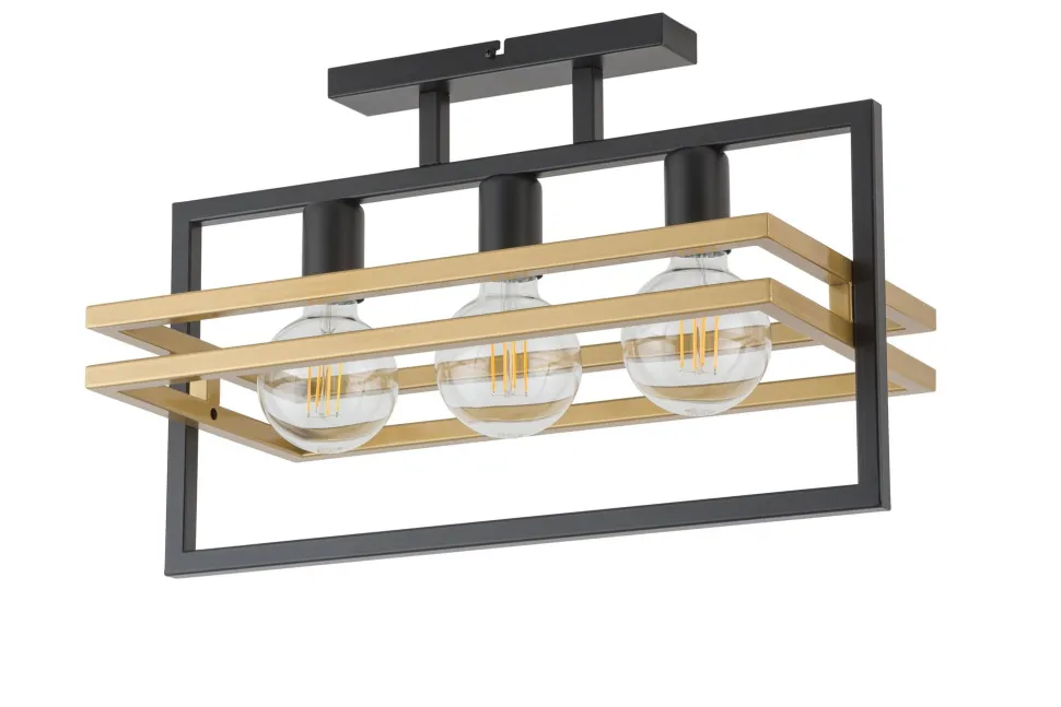 Die von zwei Rahmen in Gold umgebenen Leuchtmittel sind frei sichtbar – diese bestimmen maßgeblich den Look der Leuchte mit