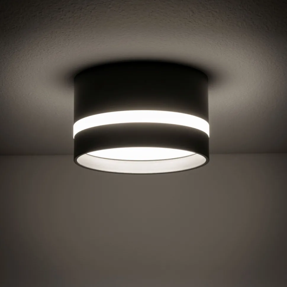 Die runde Deckenlampe sorgt für eine punktuelle Beleuchtung und passt dank ihrer geringen Größe auch in kleine Räume