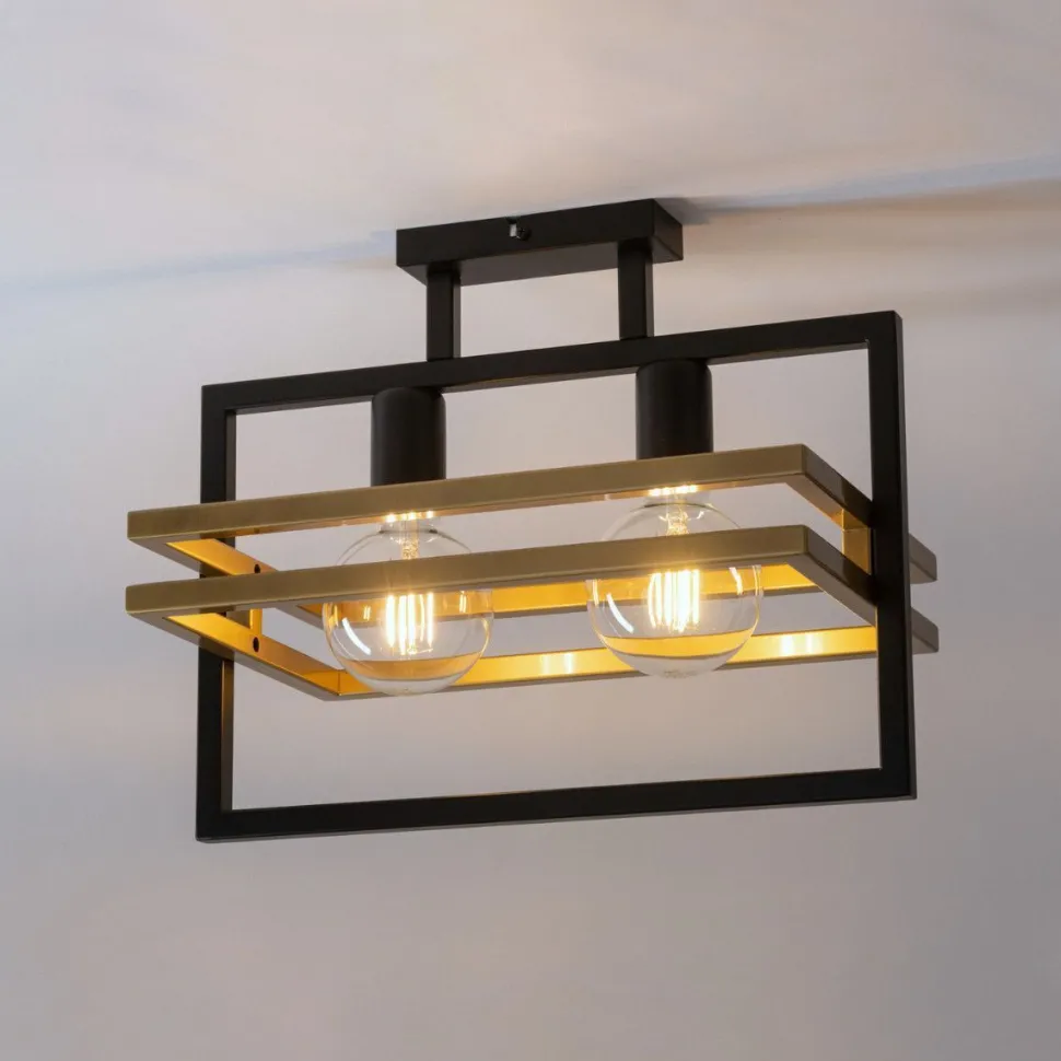 Die von zwei Rahmen in Gold umgebenen Leuchtmittel sind frei sichtbar – diese bestimmen maßgeblich den Look der Leuchte mit