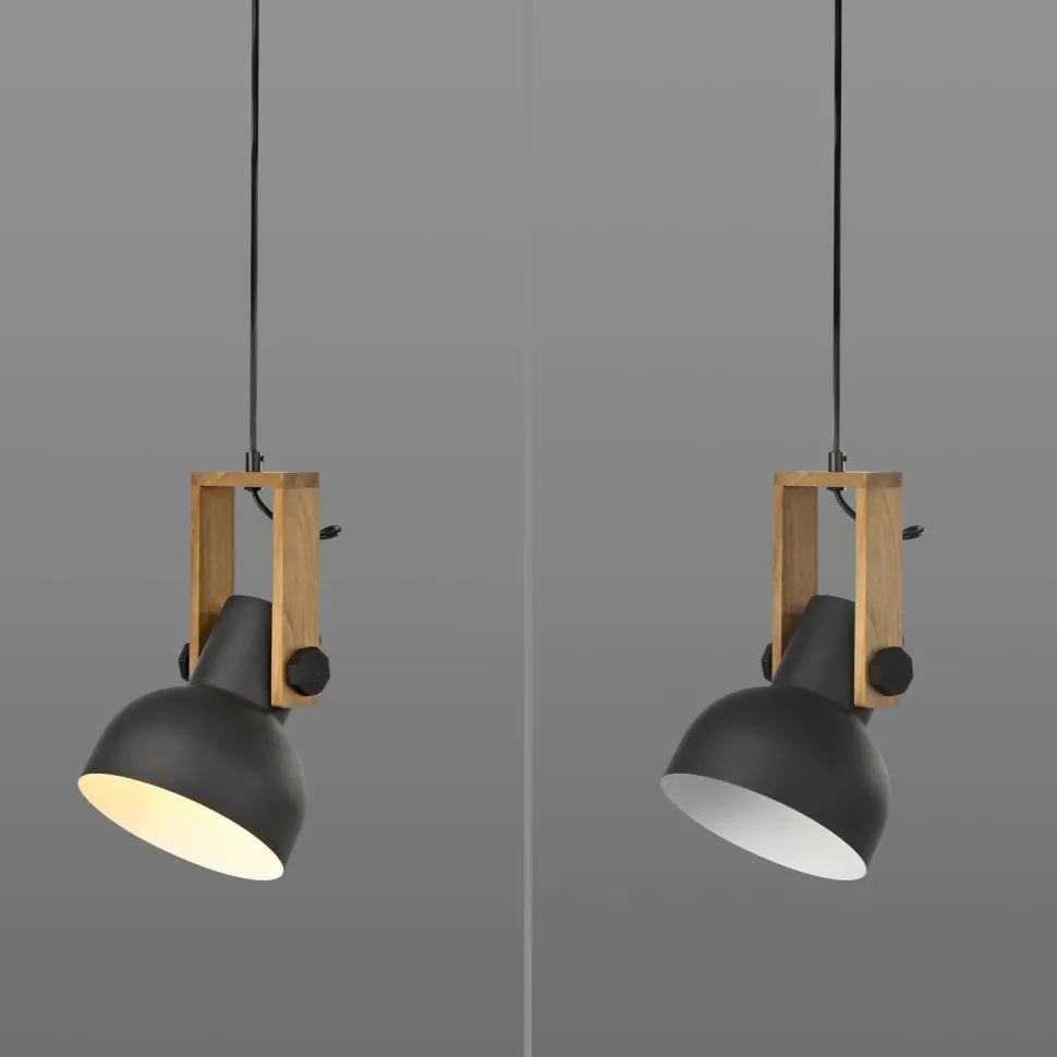 Industrie Hängelampe aus Metall und Holz in Schwarz