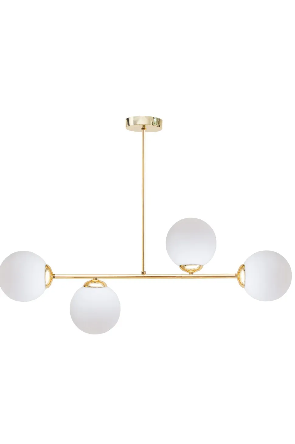Qualität Made in EU Entdecke die stilvolle Deckenleuchte DEKUT, die mit ihrem eleganten Design aus Metall und satiniertem Glas in Gold jeden Raum aufwertet. Diese moderne Deckenlampe ist nicht nur ein Blickfang, sondern auch die perfekte Lösung für hohe Decken. Mit einer Höhe von 600 mm und einem Durchmesser von 120 mm ragt sie tief in den Raum und sorgt für eine harmonische Lichtstimmung über deinem Esstisch oder im Wohnzimmer. Die satinierten Glaskugeln der DEKUT Deckenleuchte erzeugen ein warmes, weiches Licht, das eine einladende Atmosphäre schafft. Du hast die Freiheit, die Helligkeit und Lichtfarbe selbst zu bestimmen, indem du die passenden E27-Leuchtmittel wählst (max. 4x 60W). So kannst du die Lichtstimmung ganz nach deinen Wünschen gestalten – ideal für gemütliche Abende oder produktive Arbeitsstunden im Büro. Mit einer IP20-Klassifizierung ist diese Innenleuchte perfekt für den Einsatz in Wohnräumen und Büros geeignet. Die Kombination aus hochwertigem Metall und Glas garantiert nicht nur Langlebigkeit, sondern auch eine ansprechende Ästhetik. Qualität Made in EU spricht für sich und sorgt dafür, dass du lange Freude an dieser Deckenleuchte hast. Ob du ein modernes Wohnzimmer mit goldenen Akzenten gestalten oder eine stilvolle Bürolampe suchst – die DEKUT Deckenleuchte ist die ideale Wahl. Lass dich von ihrem Design inspirieren und bringe Licht und Eleganz in dein Zuhause!
