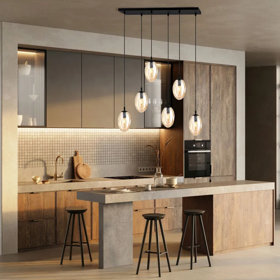 Dekorative Pendelleuchte mit extravagantem Rauchglas Lampenschirm