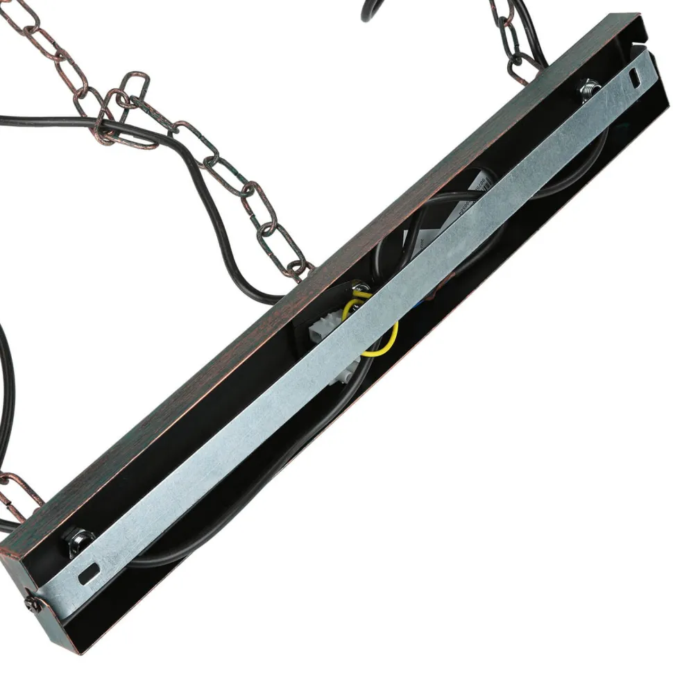 Maße Deckenhalterung: 405 mm x 50 mm | Bohrlochabstand Aufhängung: 355 mm | Schirmhöhe: 95 mm | Kettenglieder einzeln herausnehmbar (höhenverstellbar)
