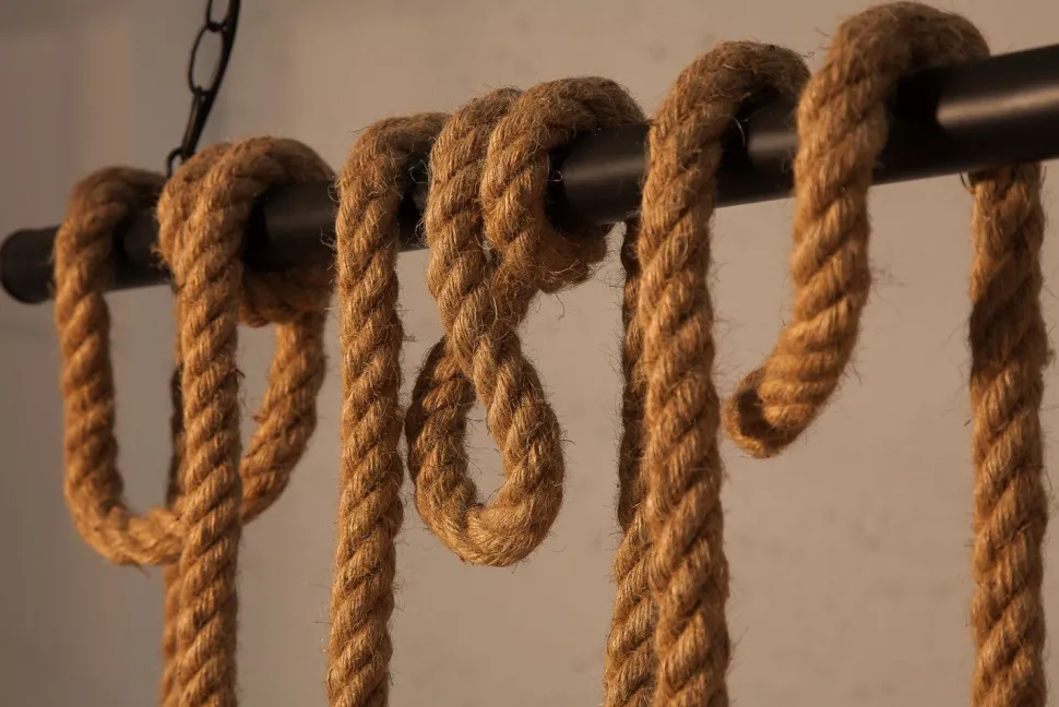 Jedes Seil kann gewickelt und geknotet werden, sodass jeder Arm individuell in Höhe und Position verstellt werden kann – über dem Esstisch oder in Wohnzimmer und Schlafzimmer.