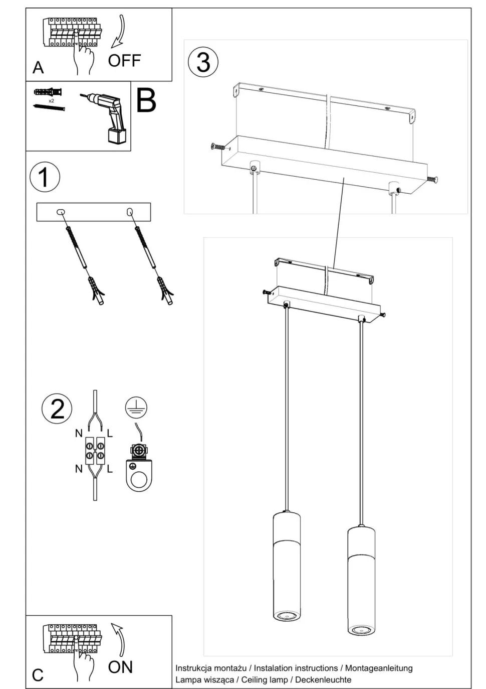| Maße: | Breite: 60 mm | Hängetiefe: 1200 mm | Länge: 300 mm | Durchmesser Schirm: 70 mm | Höhe Schirm: 280 mm | Durchmesser Sockel/Wandhalterung: 70 mm |