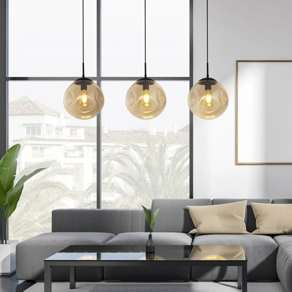 Stilvolle Pendelleuchte mit Kugelschirm aus Rauchglas