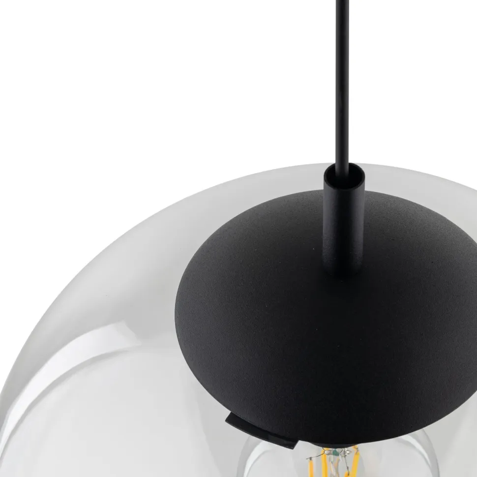 Schmale Pendelleuchte mit Kugelschirm aus Glas