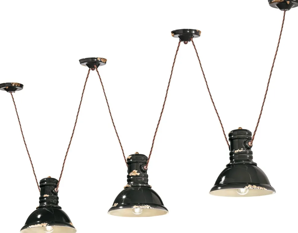 Flexibel verstellbare Pendelleuchte mit Keramik Lampenschirm in Schwarz