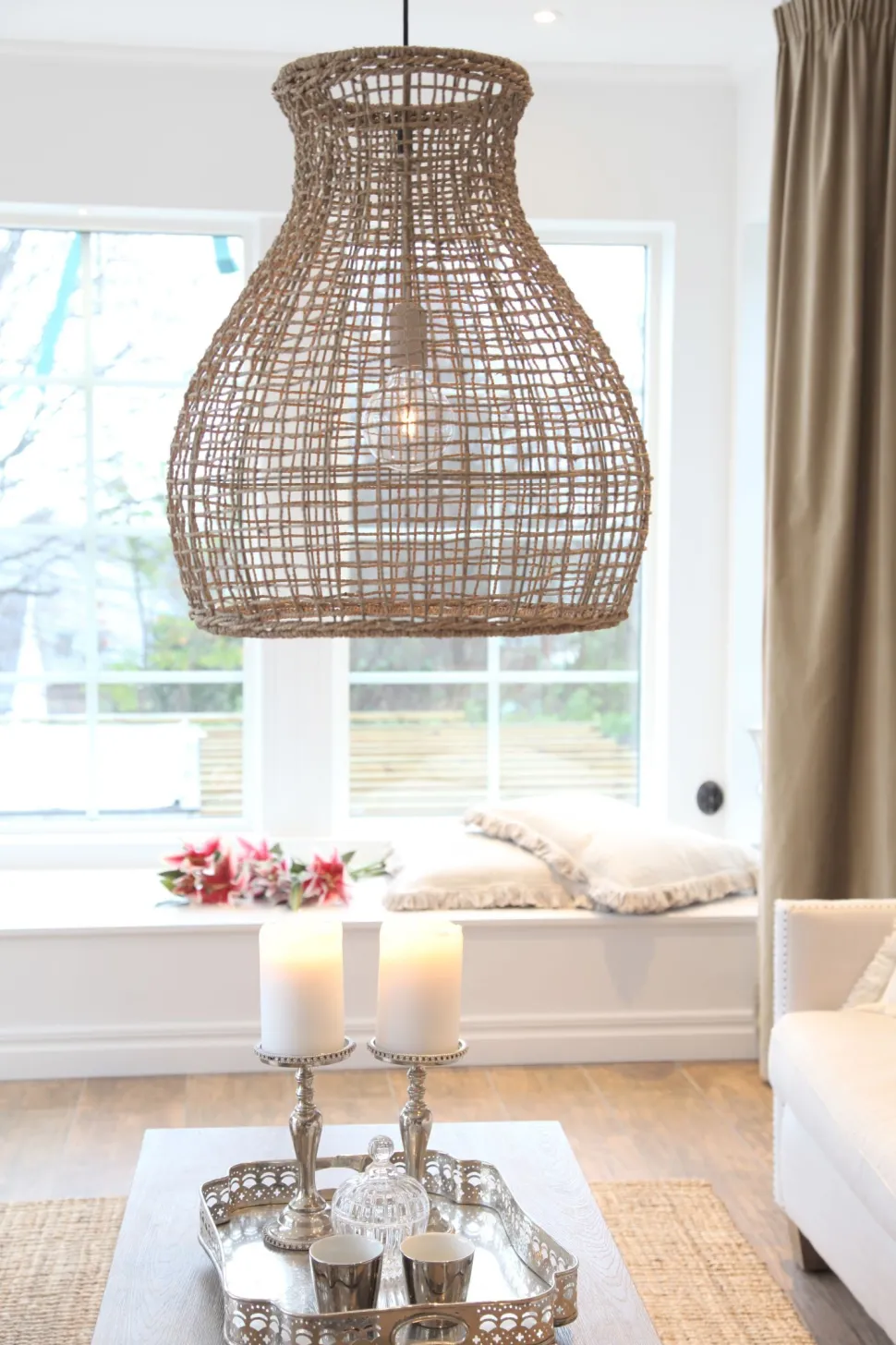 Die Pendelleuchte besticht durch den kunstvollen Korb Lampenschirm, der in jedem Wohnzimmer und Schlafzimmer zu einem außergewöhnlichen Blickfang wird