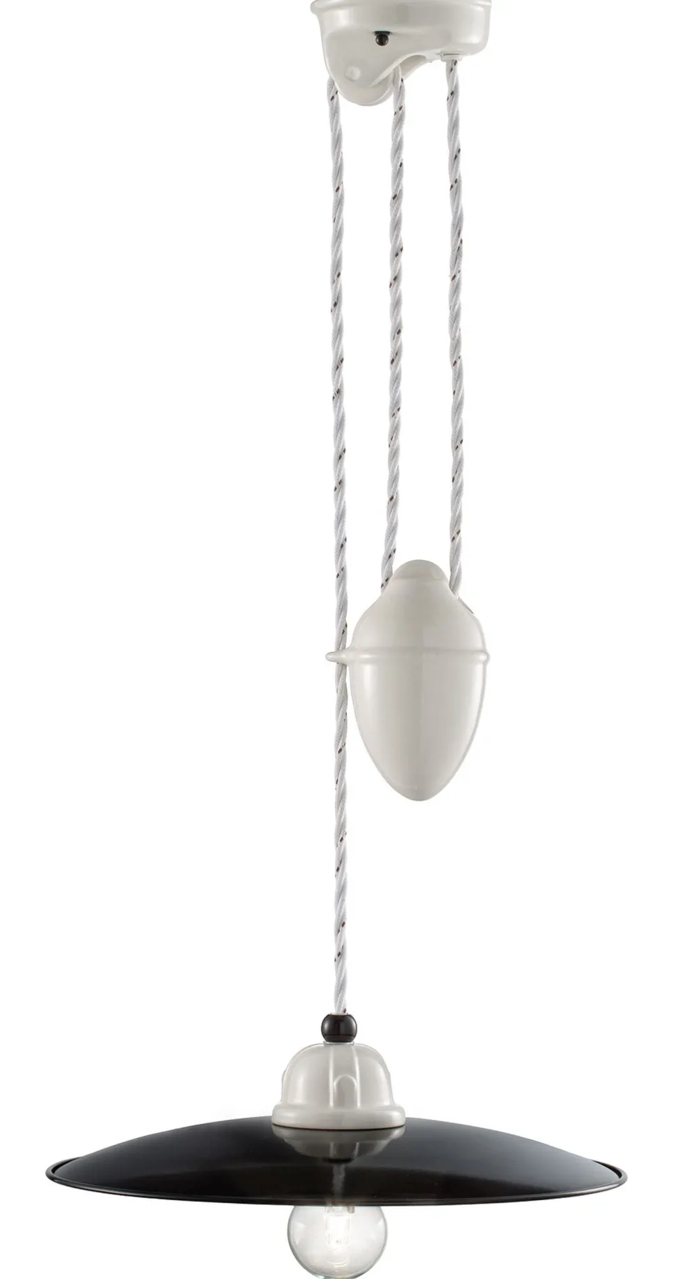 Die Hängelampe ist dank Umlenkrolle und Gegengewicht individuell in der Höhe verstellbar – ideal über Esstisch und Küchentisch
