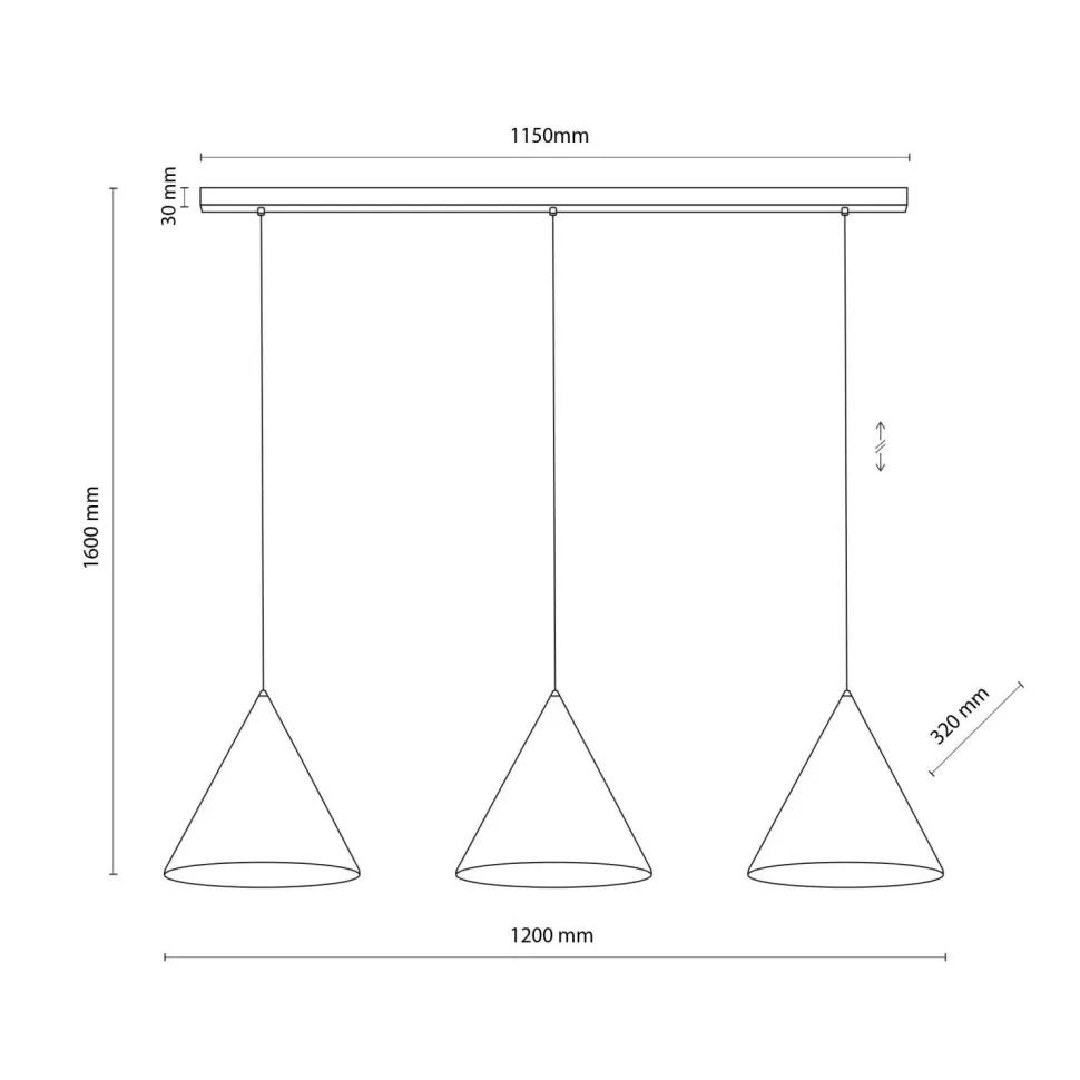 | Maße: | Breite: 320 mm | Hängetiefe: 1600 mm | Länge: 1200 mm | Durchmesser Schirm: 320 mm |