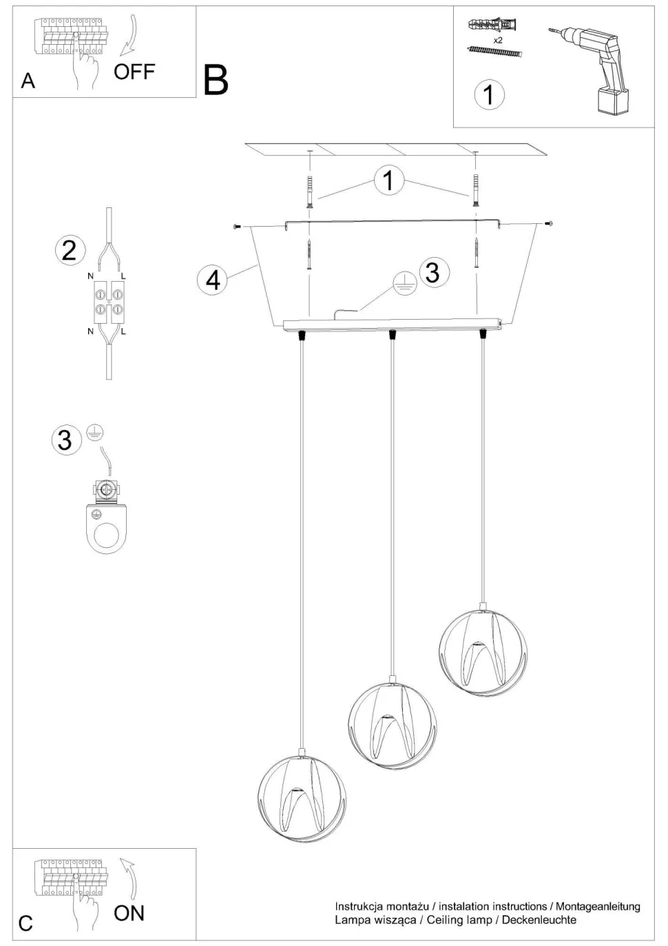 | Fassung: | 3x E27 max. 60W |