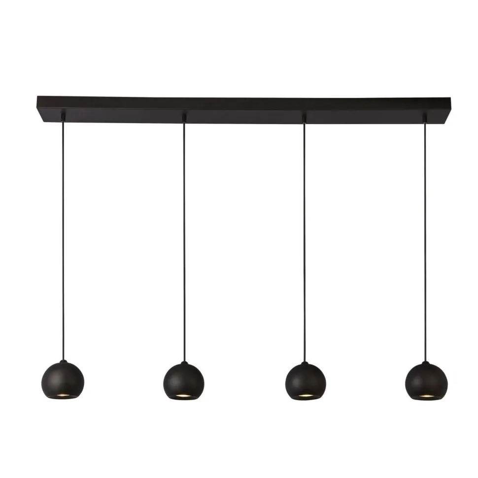 Längliche Pendelleuchte mit kleinen Kugelschirmen