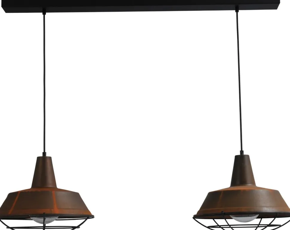 Der flache Schirm in der Trendfarbe Braun Antik ist besonders gut für niedrige Räume geeignet – Retro Highlight: das schwarze Ziergitter