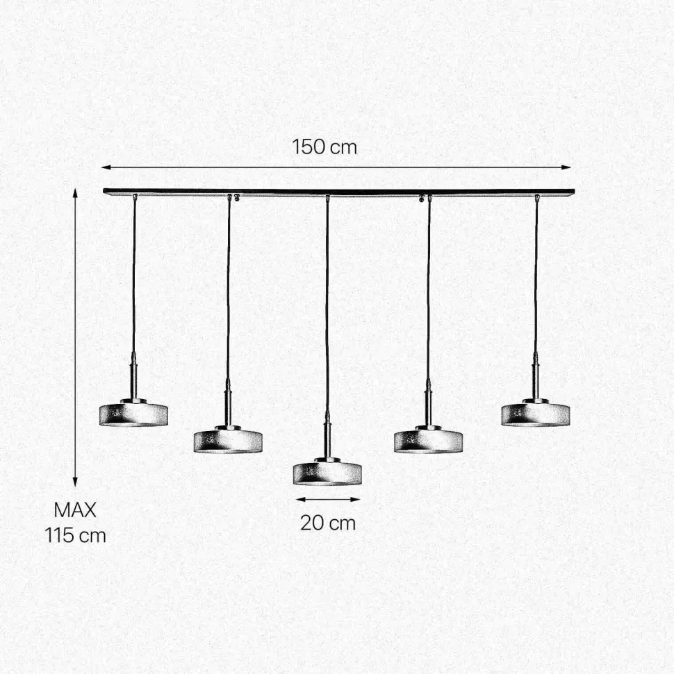 | Maße: | Breite: 200 mm | Hängetiefe: 700-1150 mm | Länge: 1500 mm | Durchmesser Schirm: 200 mm |