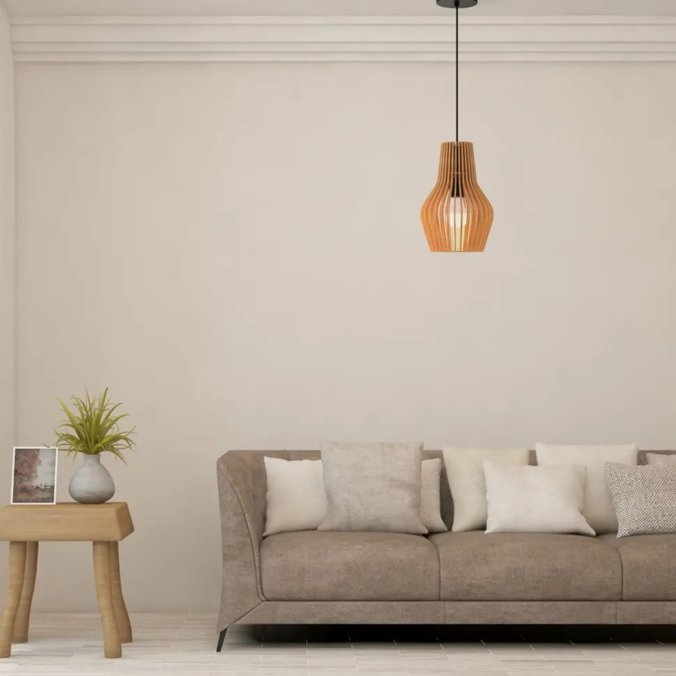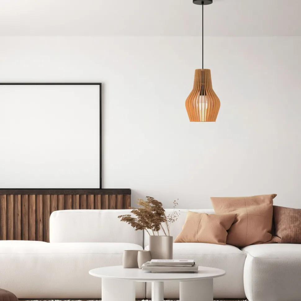 Skandinavische Pendelleuchte mit Holzschirm für Wohnzimmer und Esszimmer