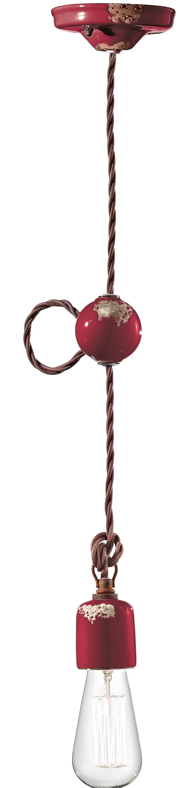 Verstellbare Pendelleuchte aus Keramik und Metall in tiefem Bordeaux Rot