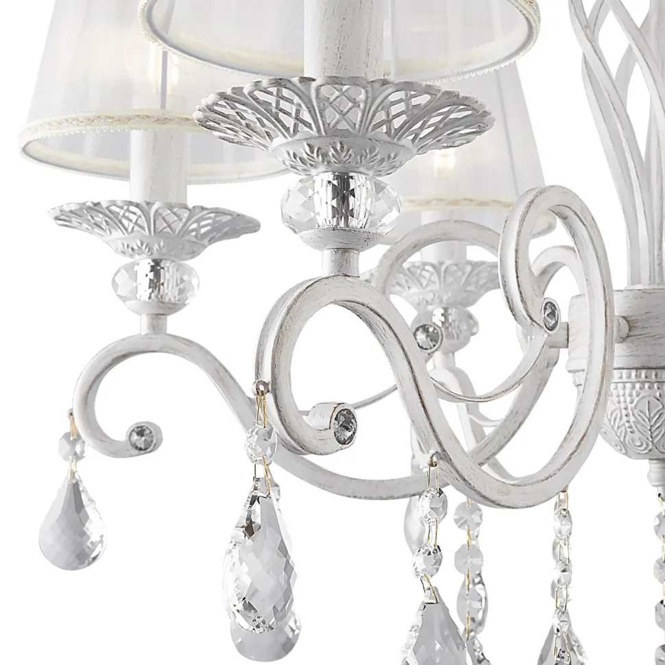 Die zarten Lampenschirme und die funkelnden Kristalle verleihen der Pendelleuchte einen romantischen Look – ein echter Hingucker in jedem Raum