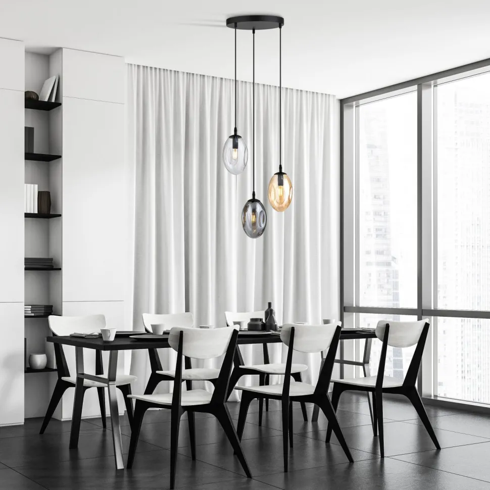 Dekorative Pendelleuchte mit extravagantem Rauchglas Lampenschirm
